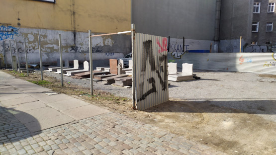 Tuż przy pl. Kościuszki powstaje wystawa nagrobków. Kiedyś zapowiadano w tym miejscu kamienicę [foto]