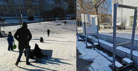 Zniszczyli wystawy na pl. Solidarności. Plansze posłużyły dzieciom jako sanki