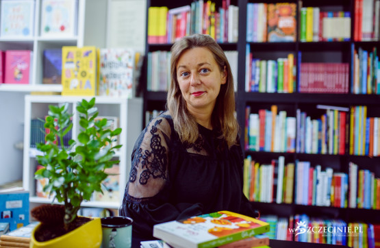 Najpierw otwiera się drzwi do księgarni z czarno - białymi regałami wypełnionymi kolorowymi książkami. - Tu się wchodzi jak do dom...