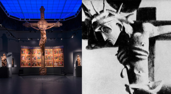 Chrystus z Krucyfiksu Kamieńskiego wygląda jakby zasnął. Twarz z Krucyfiksu Ludwiga Giesa przywołuje skojarzenie z maską przeciwga...