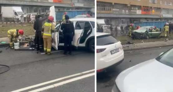 Dwie osoby zakleszczone w autach po wypadku na Gumieńcach. Konieczna była interwencja strażaków