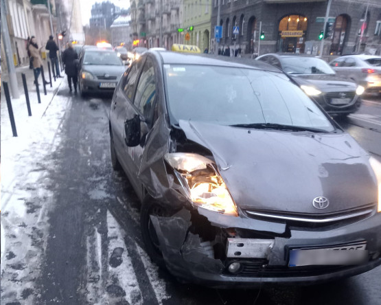 Najpierw taksówka zderzyła się z tramwajem, następnie na pojazdy najechały kolejne auta. Popołudniowy paraliż może nas czekać dzis...