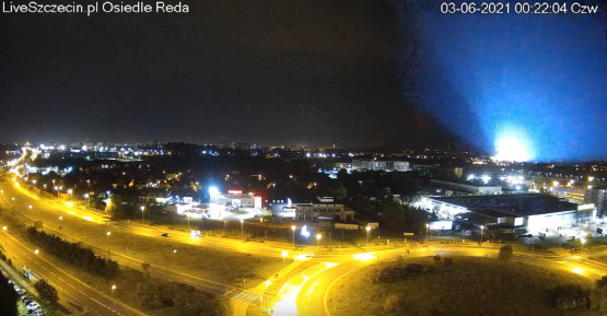 W nocy z środy na czwartek (2/3 czerwca), kamery prezentujące przez całą dobę panoramę Szczecina, zarejestrowały krótki, intensywn...