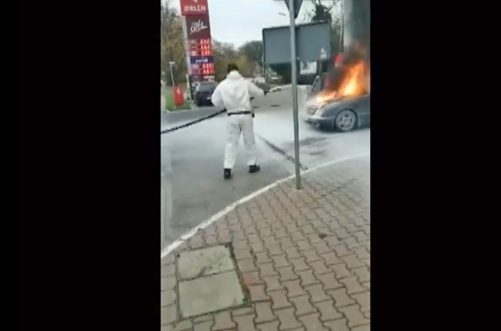 Samochód palił się na stacji benzynowej w Szczecinie [wideo]