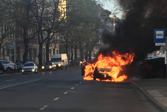 Po 13:30 na al. Wojska Polskiego, w okolicy deptaku Bogusława zapalił się samochód.