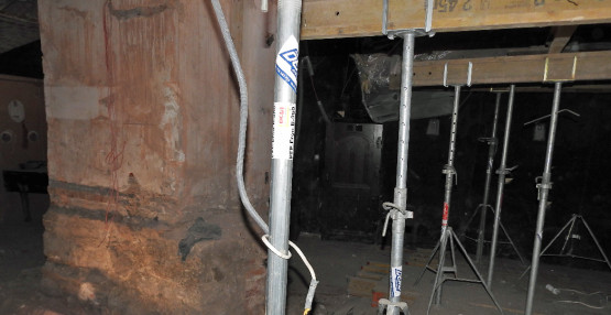 Piwnica w skrzydle północnym Zamku Książąt Pomorskich w Szczecinie już odgruzowana. Pozostał tam tylko filar, który osunął się w g...