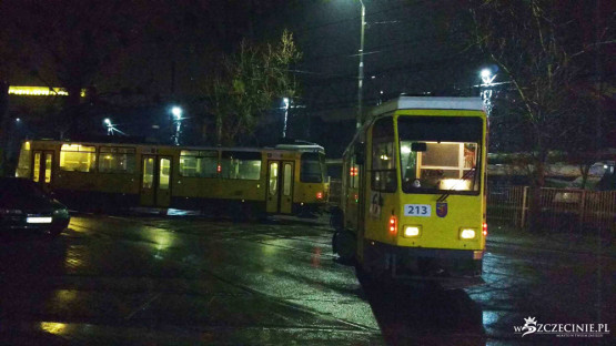 Skład jadący w stronę Pomorzan wypadł z torów na zakręcie ul. Stalmacha, przed skrzyżowaniem z ul. 1 Maja. Stojący w poprzek jezdn...