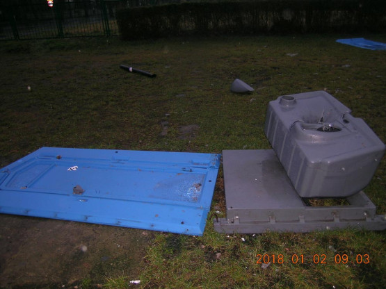 Wrzucili petardę do toi toia. Wybuch rozsadził toaletę [foto]