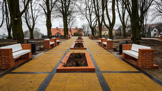 Szeroka aleja spacerowa, nowe ławki wykończone klinkierem, ogrodzony plac zabaw, siłownia pod chmurką, niewielkie boisko, kosze na...