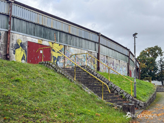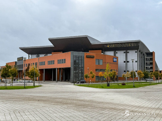 Docieramy do Netto Areny, w której organizowane są wydarzenia, targi, koncerty, a swoje mecze rozgrywają King Wilki Morskie oraz Chemik Police. Zdaniem naszego przewodnika, nie jest to jednak najlepszy przykład architektury.