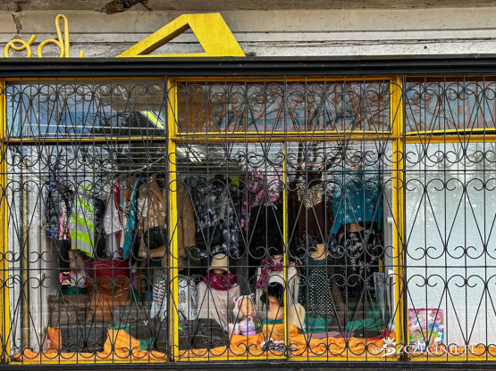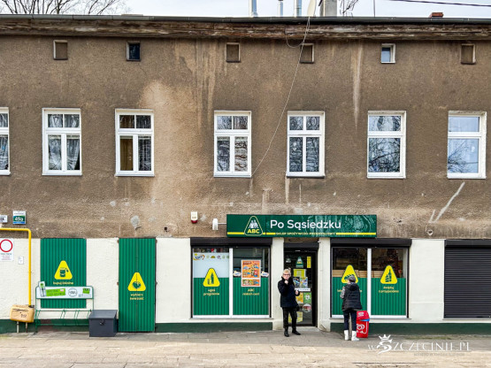Zaglądamy też na Metalową 32. Można tutaj cofnąć się do czasów, gdy na każdym szczecińskim osiedlu działały wielobranżowe sklepy, w których można było kupić bardzo różne rzeczy. W witrynie zabezpieczonej solidną kratą zobaczymy m.in. odzież, biżuterię, kosmetyki, książki o Podjuchach i masę innych szpargałów.