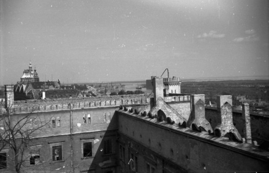 Na powojennych zdjęciach widać wyraźnie, że część wolut przetrwała działania wojenne. Świetnie udokumentowane jest to na udostępnionych niedawno fotografiach z 1948 roku autorstwa Bogdana Celichowskiego. W czasach kiedy przeprowadzano gruntowną renowację Zamku nie skupiano się jednak za wszelką cenę na odnawianiu wszystkich historycznych elementów. W tym przypadku stare detale attyki zastąpiono po prostu nowymi, wykonanymi na ich kształt.