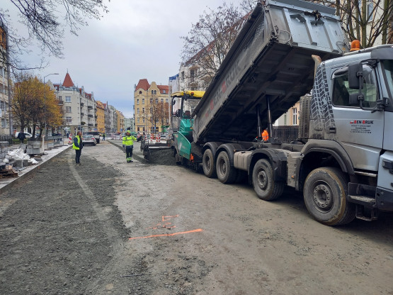 – Na odcinku od Krzywoustego do projektowanego ronda gotowe są już prawie wszystkie chodniki po obu stronach jedni. Wykonana jest opaska z kostki kamiennej, nawierzchnia chodnika z płyt grantowych i płytki kierunkowe dla osób niepełnosprawnych. Ustawiono krawężniki i obrzeża, a także wykonano roboty podziemne. To wszystko pozwoliło na przejścia do robót typowo drogowych. Do ułożenia pozostała warstwa ścieralna – informuje Hanna Pieczyńska, rzecznik prasowy ZDiTM.