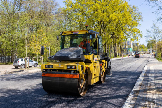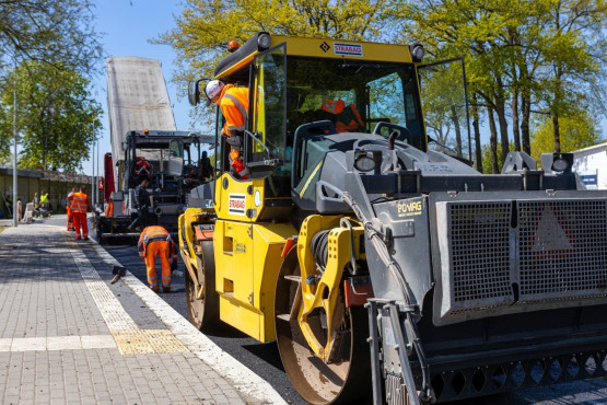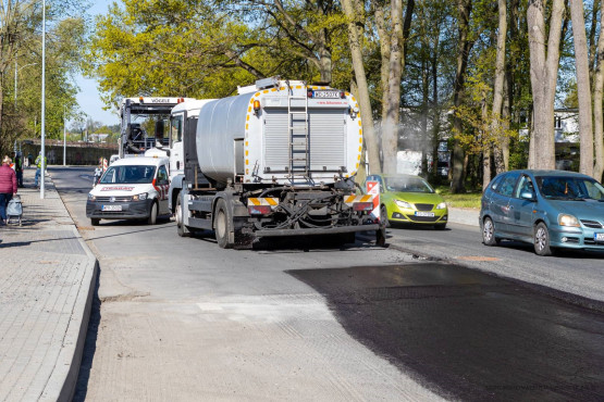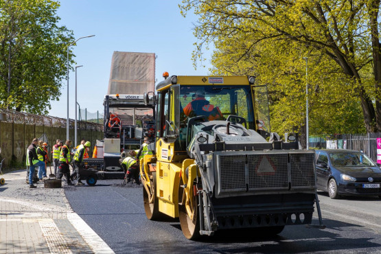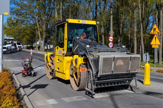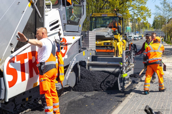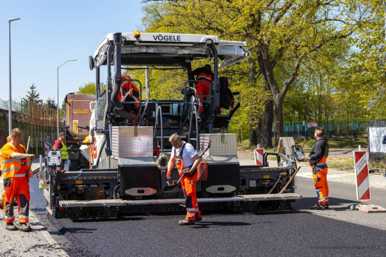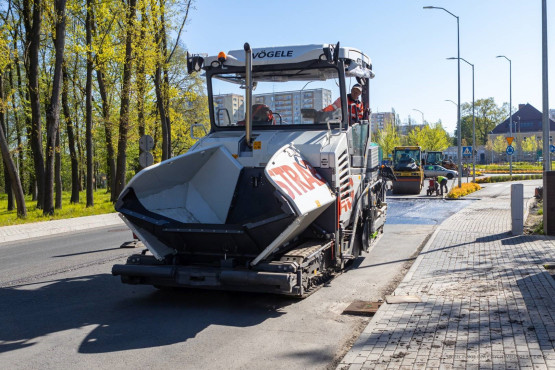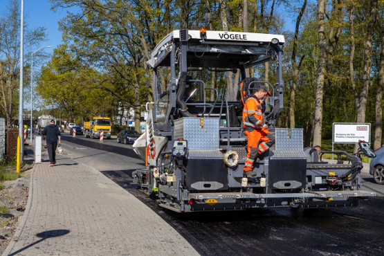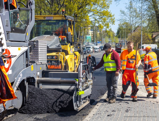 Prace związane z układaniem warstwy ścieralnej prowadzone są na prawie całym odcinku modernizowanych ulic. Wyjątkiem jest fragment jezdni na wysokości przepustu na rzece Bukowa – w tym miejscu „ściera” zostanie położona dopiero po ukończeniu przebudowy.