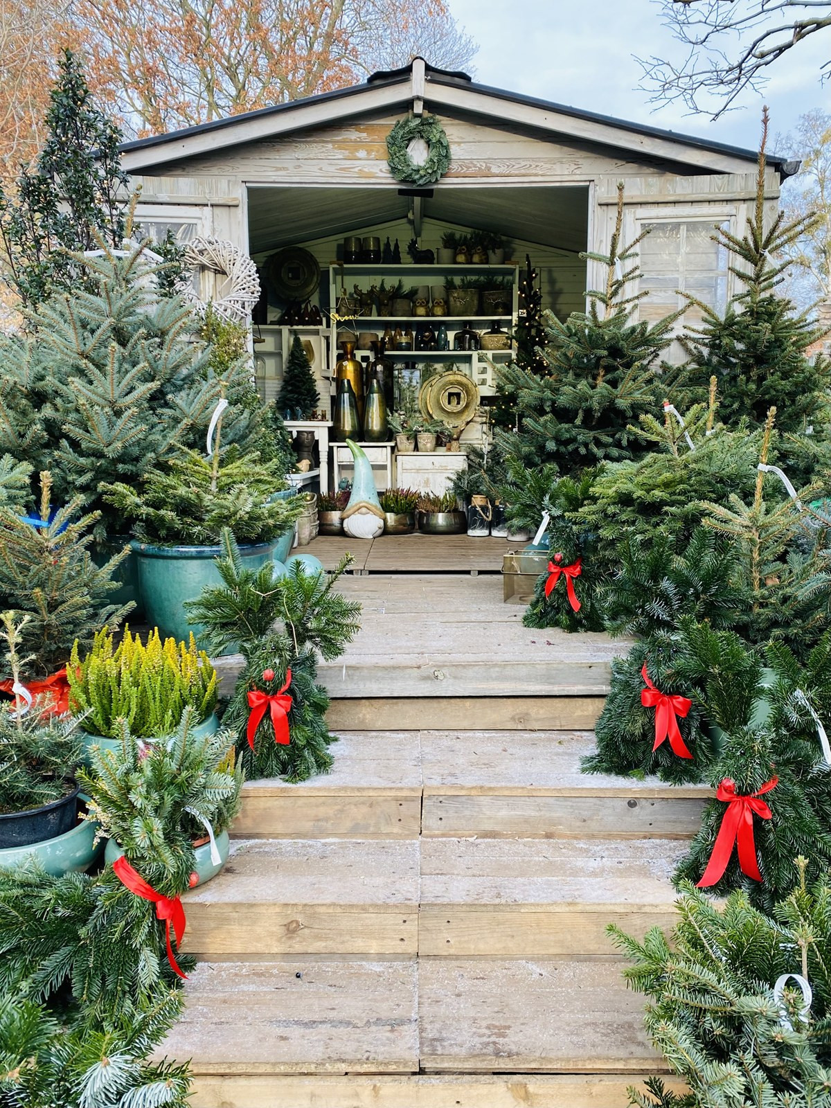 W Rajskim Ogrodzie dostaniemy nie tylko choinki – w punkcie przy al. Wojska Polskiego można znaleźć wiele innych świątecznych dekoracji: od intensywnie czerwonych poinsecji, przez wianki, ostrokrzewy, drewniane figurki, po renifery wykonane z iglastych gałązek.