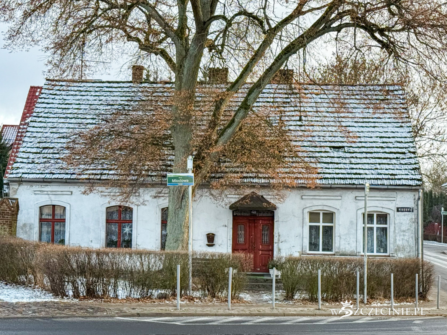 Najwięcej śladów przeszłości znajdziemy na ul. Miodowej. Już w średniowieczu był to główny trakt ówczesnej wsi i tak pozostało do dzisiaj. Mijają nas dziesiątki samochodów przemierzających odcinek Osów - Głębokie. Na dłużej zatrzymujemy się przy budynku, jakiego jeszcze na tym osiedlu nie widzieliśmy.