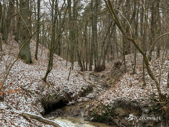 Mamy okazję zobaczyć tylko fragment lasu. Na chwilę zatrzymujemy się przy malowniczym wąwozie strumienia Żabiniec, nad którym kiedyś huśtały się na linie wszystkie dzieci z osiedla.