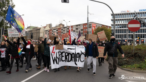 – Proszą nas, żebyśmy był grzeczne, mówią nam, żebyśmy nie nosiły spódniczek, zabraniają nam się malować. A ja mówię: mam dość! Szczecin to miasto bardzo doświadczone. PiS cofnął nas do średniowiecza, to my zrobimy jesień średniowiecza – mówiła Maria Schneider, jedna z protestujących. – Przepraszamy za to, że wypowiadamy tyle brzydkich słów, ale trzeba było nas nie wkurwiać – mówiła dalej jedna z liderek protestu.