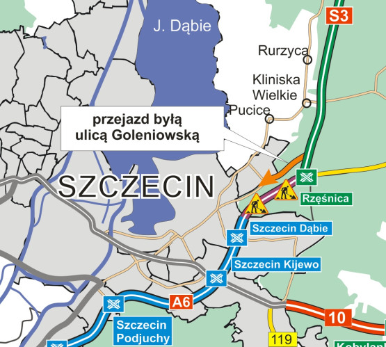 – Powinno to pomóc zmniejszyć korki, które tworzą się przed przebudowywanym odcinkiem autostrady A6 w relacji powrotnej znad morza – mówi Mateusz Grzeszczuk z Generalnej Dyrekcji Dróg Krajowych i Autostrad. – Przypominamy przy tym, iż możliwy jest tylko i wyłącznie zjazd z drogi S3 w kierunku Szczecin Dąbia, dawna ulica Goleniowska na odcinku od skrzyżowania z ulicą Kablową jest drogą jednokierunkową, a pojazdy jadące ulicą Goleniowską z drogi S3 muszą ustąpić pierwszeństwa przejazdu pojazdom jadącym ulicą Kablową – zaznacza.