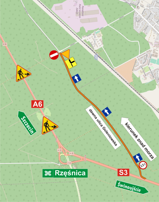 Zjazd z drogi S3 w dawną ulicę Goleniowską będzie funkcjonował do czasu występowania utrudnień związanych z realizacją robót na trasie A6/S3.