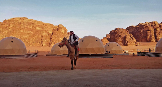 Sun City Camp to glamping (połączenie słów glamorous i camping), czyli rodzaj luksusowego campingu. Na pustyni powstały sferyczne apartamenty o powierzchni 40 metrów kwadratowych. Są w pełni umeblowane, klimatyzowane, wyposażone m.in. w łóżko z panoramicznym widokiem na pustynię i ekskluzywną łazienkę. Cena za wynajem namiotu na jedną noc to 650-1300 zł (w zależności od ilości osób). Osada mieści się ok. 45 km od miasta Akaba (jest tam lotnisko), leżącego nad Zatoką Akabską w Jordanii