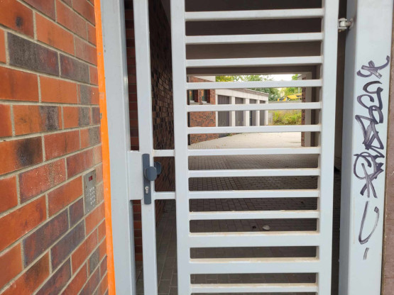 Mieszkańcy obawiają się, że rozwiercona brama zaraz zostanie zaspawana. Nieoficjalnie wiemy, że sytuacja ma być monitorowana przez służby – przy ul. Dubois obecne były m.in. patrole straży miejskiej.