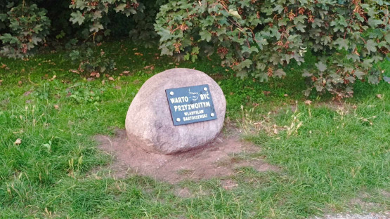 – Kamień trafił na Jasne Błonia w kwietniu 2018, po uprzednim namalowaniu napisu, cytatu słów profesora „warto być przyzwoitym” przez przyjaciółkę KOD Danutę Sudę. Jakieś dwa miesiące temu zorganizowałem zbiórkę wśród znajomych z Komitetu Obrony Demokracji w regionie i zamówiłem tablicę z granitu o grubości ok. 2,5 cm z wygrawerowanym napisem. Tablica umocowana na czterech śrubach wyglądała imponująco – mówi Antek Maciarenko, aktywista Komitetu Obrony Demokracji.
