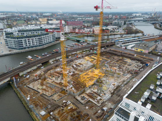 Na ponad 23 tys. m kw. powstanie 387 mieszkań w układach od 1 do 5 pokojów, 12 miejsc postojowych naziemnych oraz 456 miejsc podziemnych. W połowie listopada br. deweloper zakończył roboty ziemne oraz związane z zabezpieczeniem wykopu.