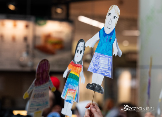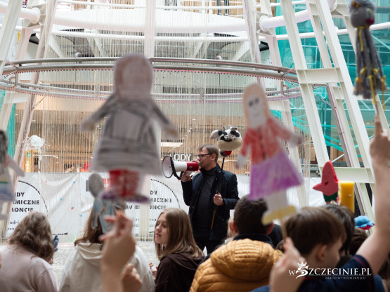 W ramach akcji w galerii pojawili się aktorzy teatru w towarzystwie lalek, a także dzieci ze szczecińskich podstawówek z własnoręcznie wykonanymi lalkami. Dostrzec można było jednookiego zielonego potworka, lalkę do złudzenia przypominającą tę z logo Pleciugi, a także rudowłosą piękność wykonaną z drewnianej łyżki kuchennej i włóczki. To efekty pracy dzieci podczas pleciugowych warsztatów, a także zajęć z uczniami w szkole.