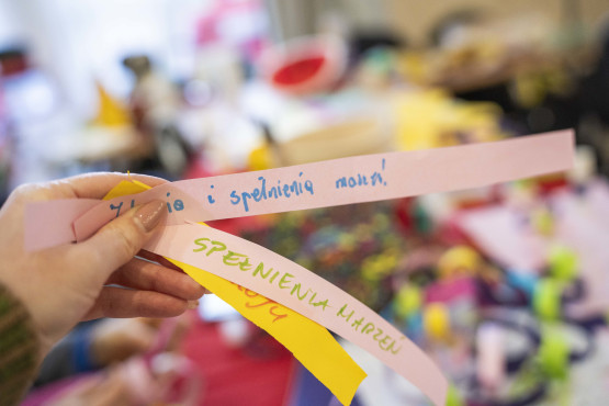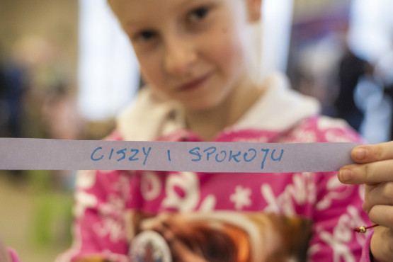 - Dużo szczęścia, miłości, dużo prezentów - wymienia zapisane życzenia Ola, która na spotkanie przyszła z koleżanką Kasią. - Bardzo nam się podoba! Robimy łańcuch, dekorujemy pierniczki, mogę spędzić czas ze swoją przyjaciółką - mówi Kasia.