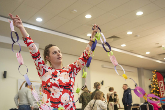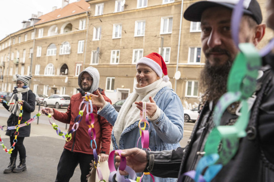 Daniel Gołubowicz, tata dziewczynek, również zaangażował się w pracę przy robieniu ozdób i klei kolejne ogniwa łańcucha. - Jesteśmy już kolejny raz na takim wydarzeniu. Można poczuć atmosferę świąt, spędzić razem czas - mówi. Zwraca też uwagę, że podobne spotkania to okazja, aby pokazać dzieciom, że ciekawe rzeczy można robić, nie tylko siedząc z nosem w smartfonie. - Smartfona wyciągają tylko na koniec, żeby zrobić zdjęcia na pamiątkę i mieć piękne wspomnienia - mówi.