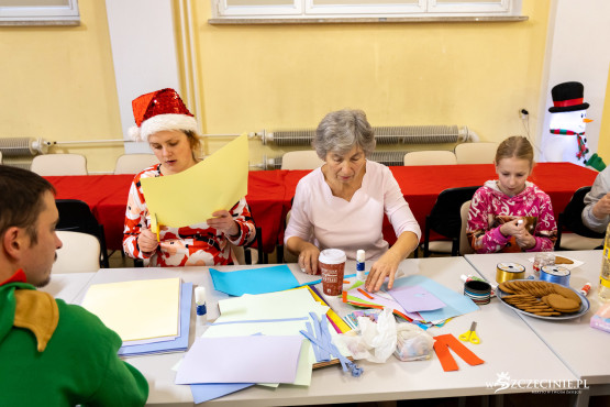 Nie jest jedynym dorosłym przy wspólnym stole, bo „Osiedlove ubieranie choinek” ma także integrować pokoleniowo i zachęcać dorosłych do wolontariatu. Świetnie bawiące się przy dekorowaniu kobiety nie mają wątpliwości: takie spotkania są bardzo potrzebne.