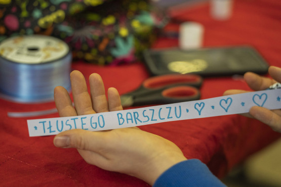 Obok nich kolorowe bombki z papieru tworzy Emilia, która na spotkanie przyszła z młodszą siostrą i tatą. - Uwielbiam świąteczne ozdoby, mam taki świąteczny vibe, podoba mi się tu, są ludzie związani wspólnym celem - mówi nastolatka.