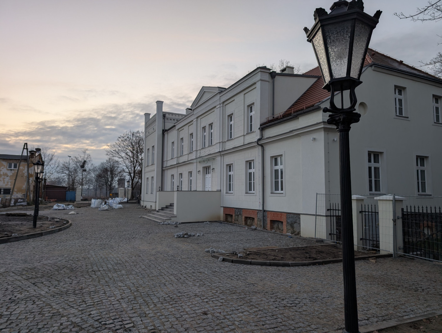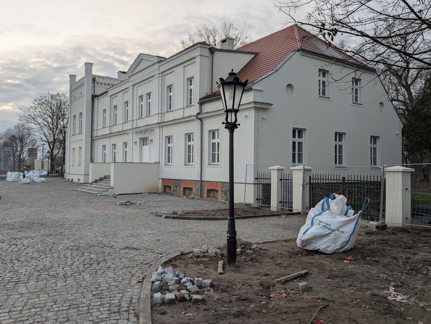 – Trwają ostatnie prace na zewnątrz budynku – mówi Łukasz Tomaszewicz. – W zeszłym tygodniu zostały zamontowane latarnie, które wcześniej były na Zamku Książąt Pomorskich. Dostały drugie życie.