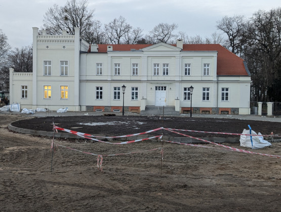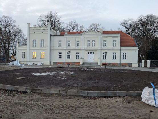 Do dworu przylega XIX-wieczny park z pomnikowymi dębami, szpalerami grabów oraz klonów, który też niedługo się zmieni.