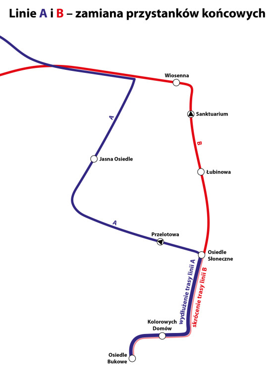 Pospieszne zamienią się więc przystankami końcowymi na Prawobrzeżu. Znów będzie tak, jak przez lata byli przyzwyczajeni pasażerowie: A – Bukowe, B – Słoneczne.