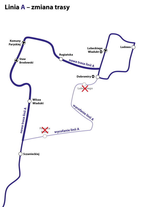 – Pozwoli to na włączenie osiedla Książąt Pomorskich w zasięg linii A. Obsługa Fabryki Wody tą linią zostanie zachowana poprzez przystanek „Wilcza Wiadukt” – tłumaczy Kacper Reszczyński.