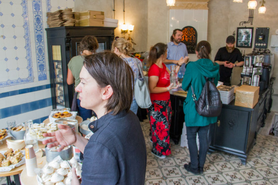 – Obserwuję bardzo dużą społeczną serdeczność i zainteresowanie – opowiada właścicielka księgarnio-kawiarni Monika Szymanik, autorka instagramowego profilu „Kamienica w lesie” z niebanalnymi zdjęciami Szczecina oraz albumu fotograficznego o tym samym tytule. – Cieszę się ogromnie, że udało nam się stworzyć to miejsce – niestety na razie bez przestrzeni kawiarnianej. Odwiedzili nas dziś m.in.: Pan Michał Lewandowski, który od 1948 roku miał tutaj sklep mięsny oraz Pan Aleksy Pawlak, którego unikatowe publikacje są dostępne w naszej księgarni. Chcę, żeby ta przestrzeń była wspólna i świadczyła o wzmacnianiu lokalnej społeczności. Lampy dobrał pod wystrój tego miejsca Pan Lech Turkowski z jednego z najstarszych warsztatów. Ja jestem absolutnie przeszczęśliwa.