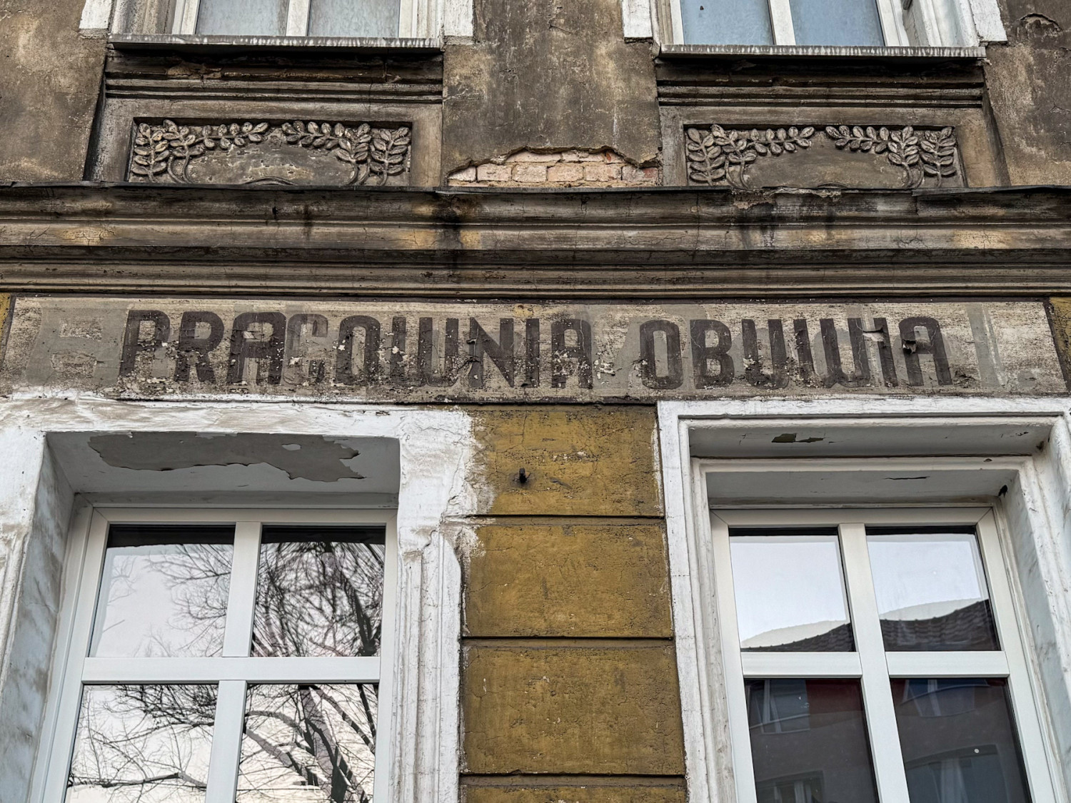 – Na froncie kamienicy widzimy, zresztą bardzo zgrabny, polski napis „Pracownia obuwia”, który zakrywa napis niemiecki. Nie jest on jednak taki łatwy do rozszyfrowania, dlatego konieczne było małe śledztwo – opowiada prowadząca punkt sąsiedzki „u Krysi”.