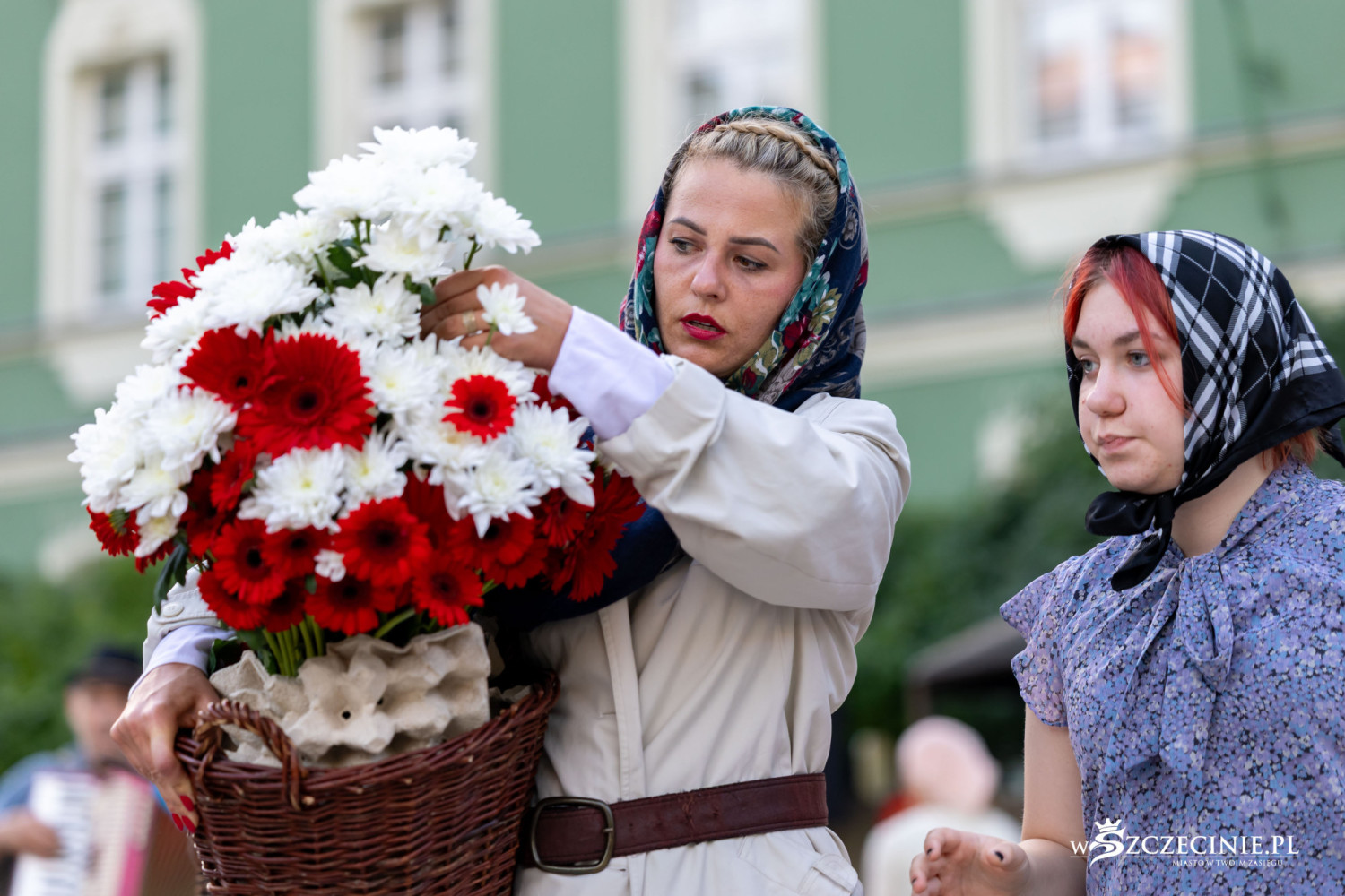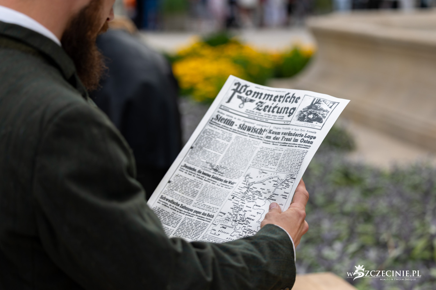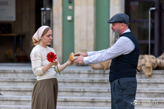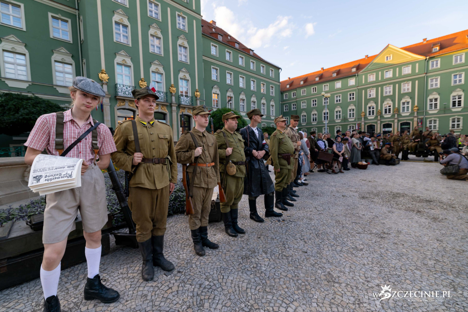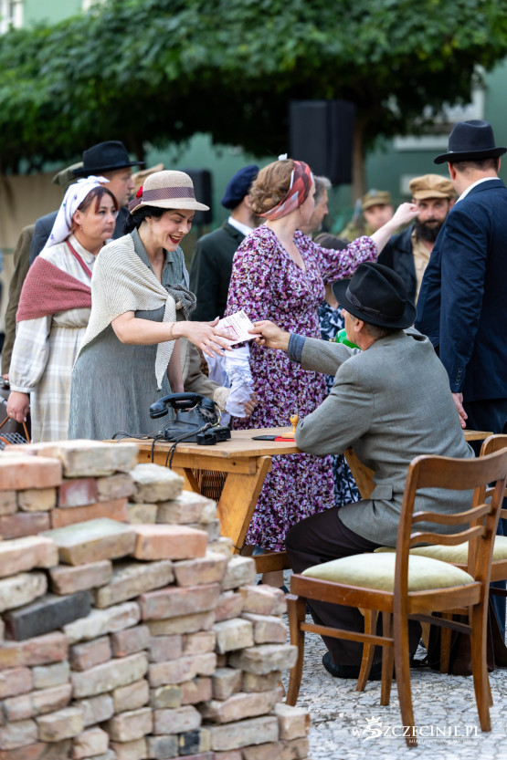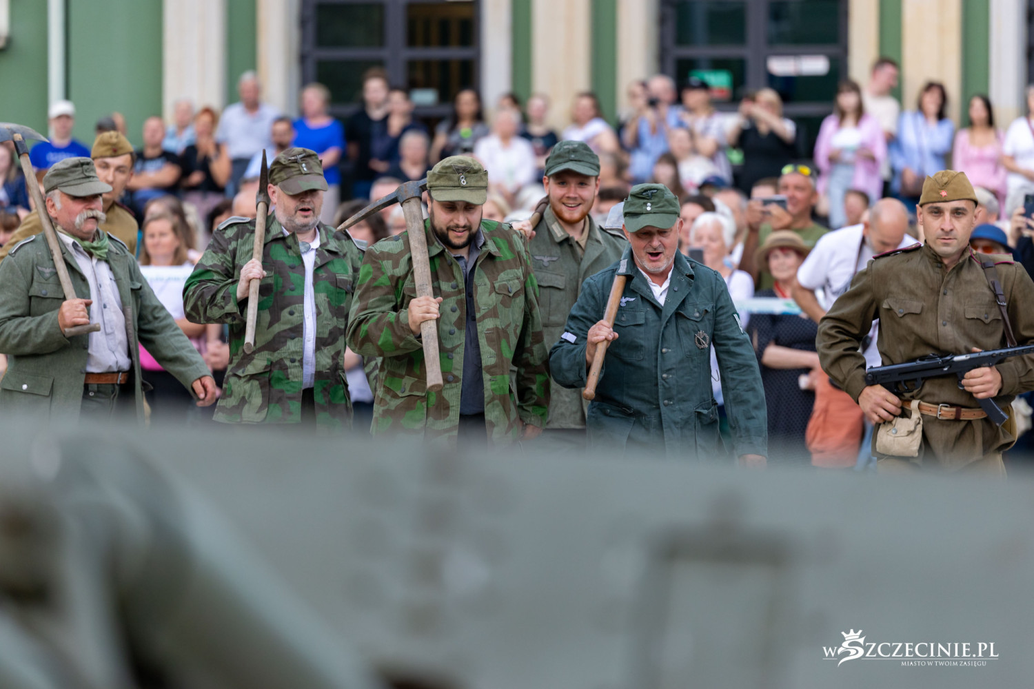 Zebrani na placu Armii Krajowej mieszkańcy zobaczyli sceny z pierwszych miesięcy życia w powojennym Szczecinie – od wyjazdu ostatnich przedstawicieli niemieckich władz, uliczne walki, chaos, głód, po handlowanie w otoczeniu cegieł i ruin, otwarcie pierwszej szczecińskiej piekarni i objęcie prezydentury przez Piotra Zarembę.