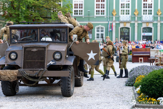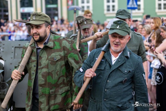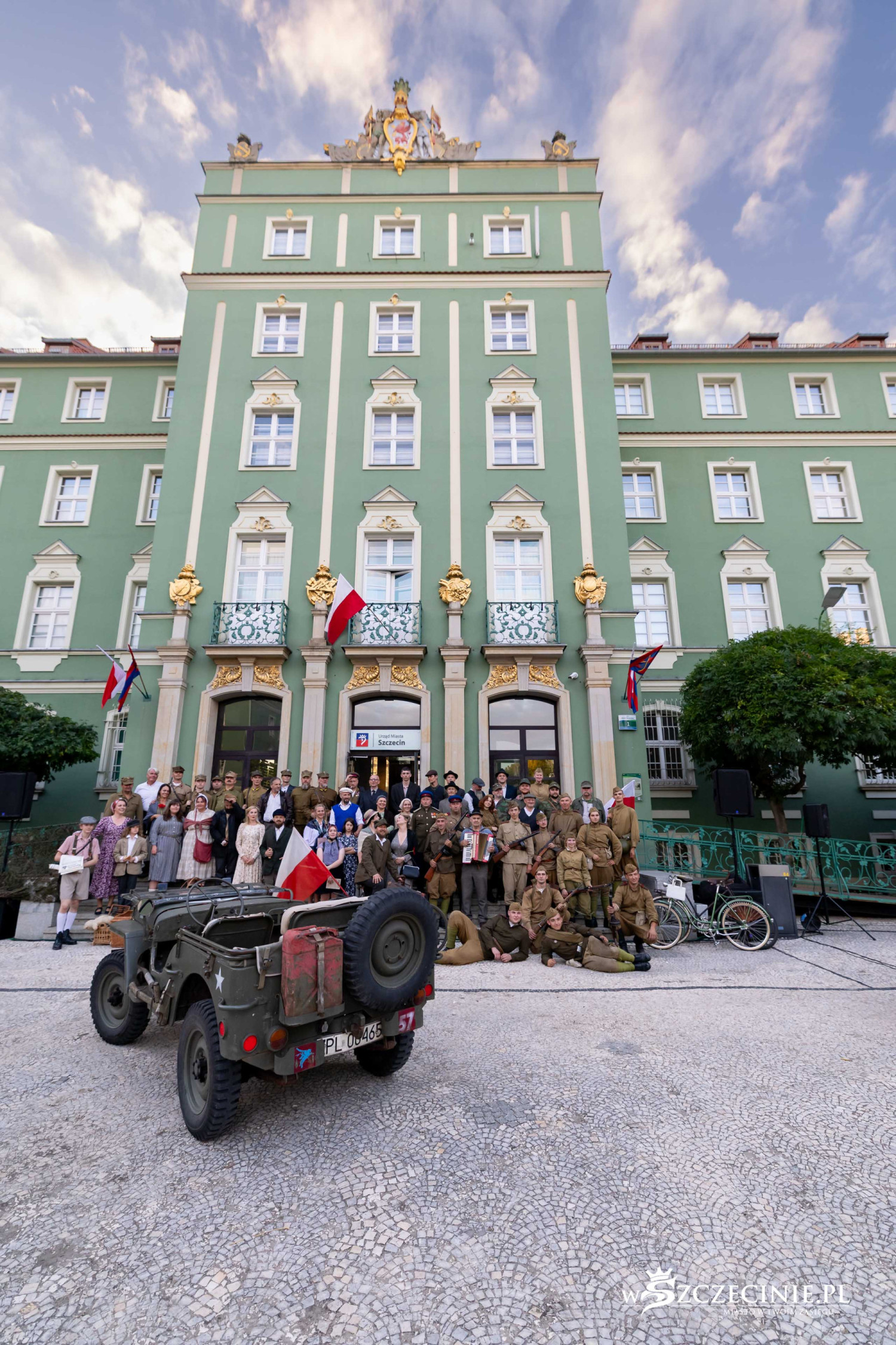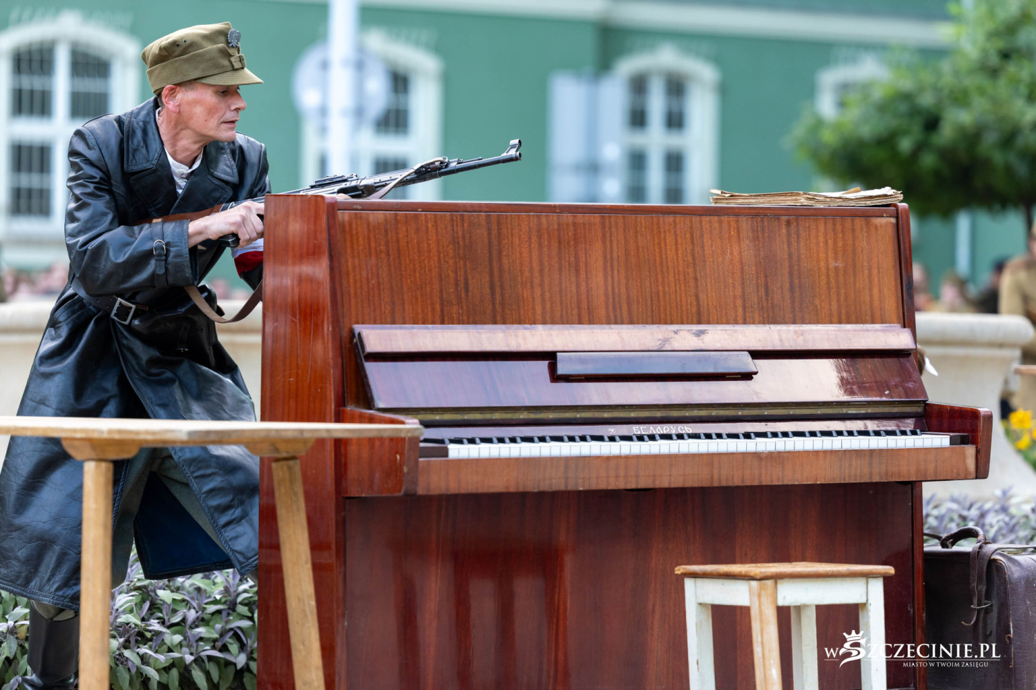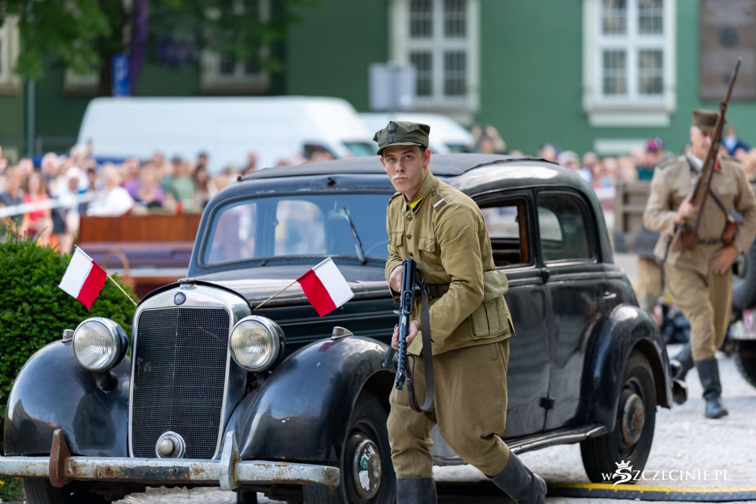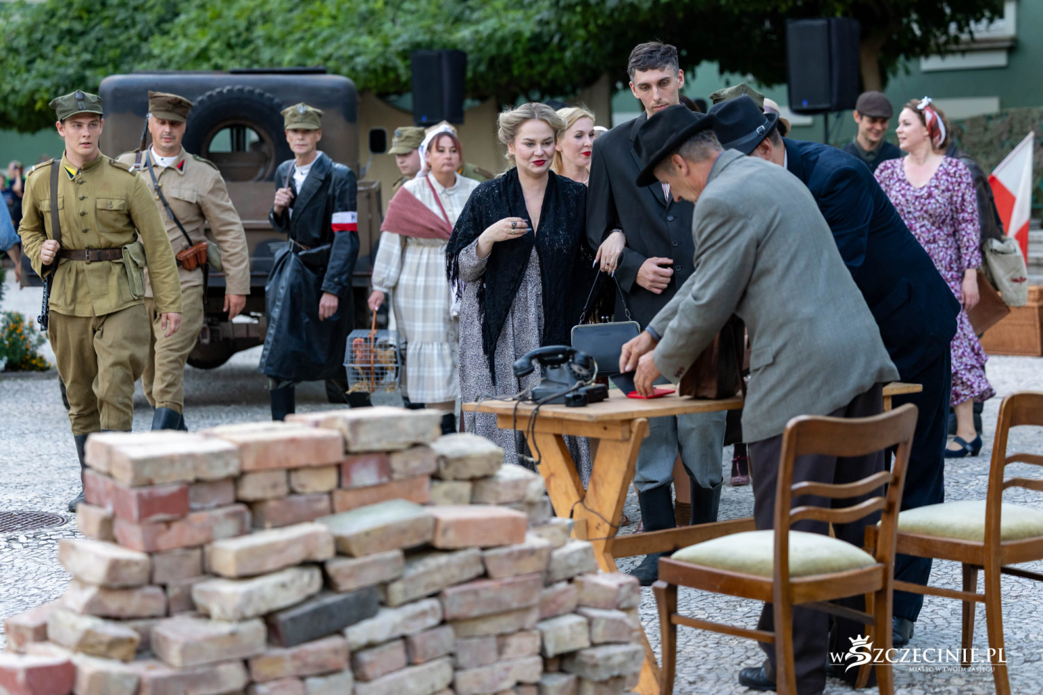 Zebrani na placu Armii Krajowej mieszkańcy zobaczyli sceny z pierwszych miesięcy życia w powojennym Szczecinie – od wyjazdu ostatnich przedstawicieli niemieckich władz, uliczne walki, chaos, głód, po handlowanie w otoczeniu cegieł i ruin, otwarcie pierwszej szczecińskiej piekarni i objęcie prezydentury przez Piotra Zarembę.