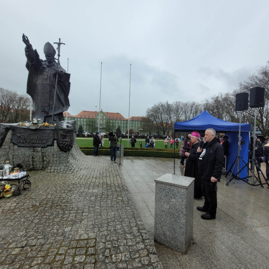 – Przyznam szczerze, że grzeszyłem niewiarą. Myślałem, że frekwencja będzie tragiczna przez deszcz, a proszę bardzo, jest tłum ludzi, jest w nas energia. Jesteśmy, doszło do marszu i zaprezentowaliśmy nasze hasło. Przez Szczecin od rana jeździł dzwon „Głos nienarodzonych”, który dawał o sobie akustycznie znać – mówił ks. Tomasz Kancelarczyk. – Marsze są organizowane po to, by wyjść na ulicę z obroną życia i afirmacją życia. Chcemy także uhonorować dzisiaj osobę św. Jana Pawła II. Cywilizacja życia to sformułowanie wypowiadane przez niego wielokrotne. Papież mówił o wojnie cywilizacji śmierci z cywilizacją życia. My demonstrujemy, że bronimy życia i jesteśmy z cywilizacją życia.