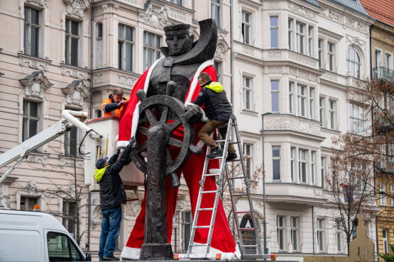 – Jestem mieszkańcem Szczecina od 1946 roku i kocham wszystko to, co wyróżnia nasze miasto. Marynarz w stroju świętego mikołaja bardzo mi się podoba. Jego świąteczna odsłona wrosła już w pejzaż miasta i zwraca na nią uwagę każdy, kto tędy przechodzi. Naprawdę robi wrażenie – mówi pan Zygmunt, który jak wielu mieszkańców Szczecina przyszedł na aleję fontann, aby zobaczyć przebieranie rzeźby.