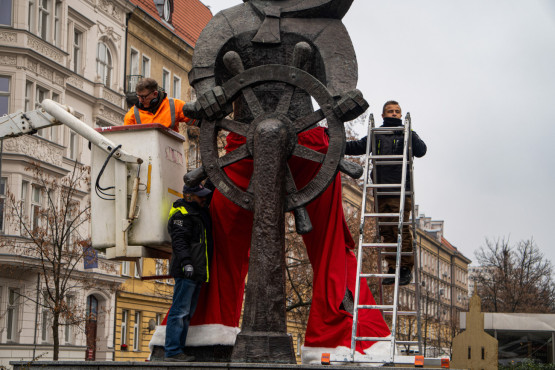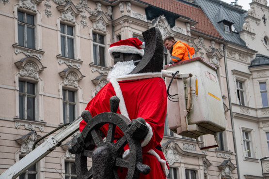 Nad nową stylizacją marynarza pracowały trzy osoby. Ubieranie rozpoczęło się od założenia spodni. Potem przyszedł czas na czerwony płaszcz, brodę i charakterystyczną czapkę. Część prac, z uwagi na wielkość rzeźby, musiała być wykonywana z użyciem podnośnika.