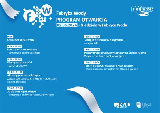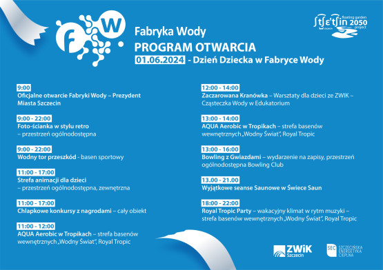 W pierwszy weekend funkcjonowania Fabryka Wody będzie otwarta od 09:00 do 22:00. Miasto spodziewa się tłumów, stąd w najbliższych dniach zakup biletów wstępu będzie możliwy jedynie bezpośrednio przed wejściem do obiektu.