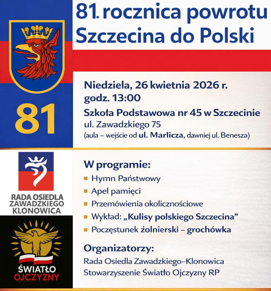 – Nie miałem zaproszenia na to wydarzenie rady osiedla. Aktualna wiedza historyczna w sposób oczywisty nie pozwala traktować daty 26 kwietnia 1945 r. jako symbolicznej „rocznicy powrotu Szczecina do Polski”. To jedynie data wkroczenia do Szczecina oddziałów Armii Czerwonej, które trudno traktować jako oddziały wyzwoleńcze. Ostateczne przejęcie miasta przez Polaków nastąpiło 5 lipca 1945 r. I tyle w tematyce historycznej. Co zaś do zaangażowania rady osiedla we wsparcie polityków partii, delikatnie rzecz ujmując, kontrowersyjnej, to sprawa wymaga dalszego wyjaśnienia. Nie chciałbym, żeby na scenie występował oskarżony o szpiegostwo na rzecz Rosji skompromitowany polityk tej partii, pan Piskorski, nie chciałbym, żeby ktoś próbował przemycać prorosyjskie treści pod płaszczykiem jakiegoś osiedlowego spotkania. To nie integruje mieszkańców, ale tworzy niepotrzebne podziały – komentuje radny PiS Marek Duklanowski.