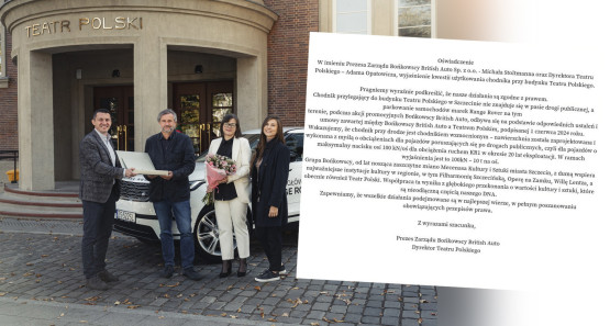 Dealer zobowiązuje się za to do przekazania Teatrowi Polskiemu w użytkowanie dwóch samochodów.