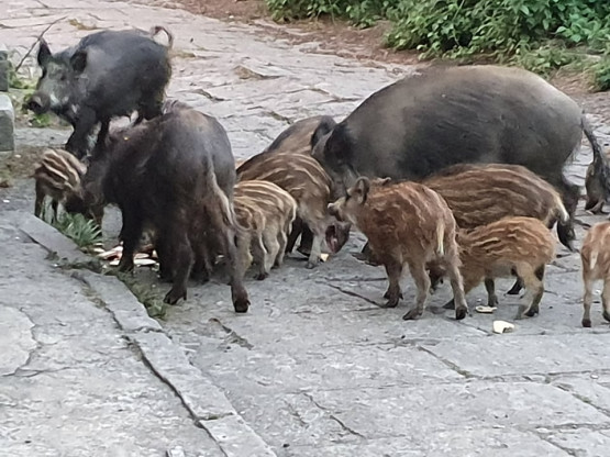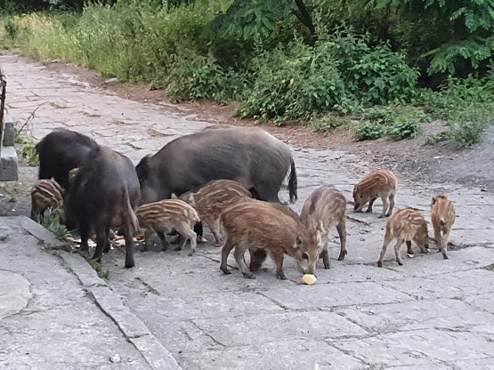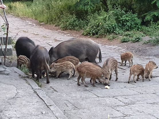 – Nie damy zabić naszych dzików. Odstrzał małych i loch jest w Polsce nielegalny. Nie wolno strzelać – mówi stanowczo nasza rozmówczyni, która zgodziła się na wywiad i robienie zdjęć zwierzętom, ale zaznaczyła, że nie chce być przedstawiona ani fotografowana. Mieszkańcy przyzwyczaili się już do dzików, podczas naszej wizyty kilkoro z nich wyszło przed budynek i bez skrępowania rozmawiało, stojąc zaledwie metr od jedzącej kolację watahy.