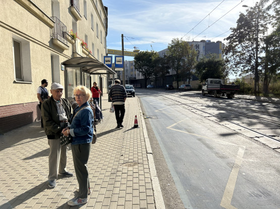 Na przystanku spotykamy panią Alicję, która była pewna, że bez przesiadek dojedzie na Ludową.