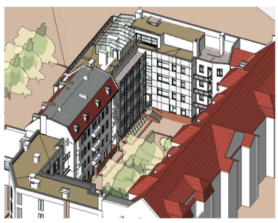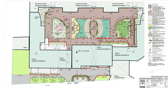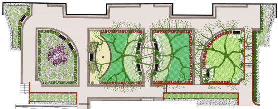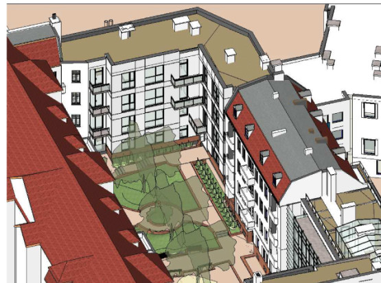 Na wewnętrznym dziedzińcu zachowane mają być rosnące tam drzewa, a dodatkowo pojawi się więcej zieleni i elementy małej architektury.